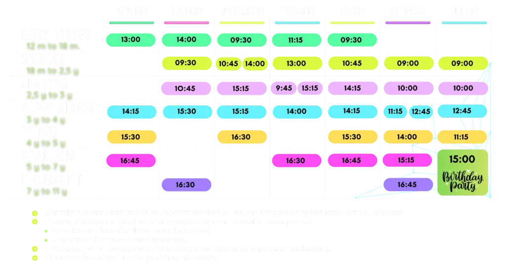 Thank you for being part of the STRONGKIDDO family! We’ve updated our class schedule and refined some programs to better fit your children’s needs. Along with refreshed Baby Bosses and Skiddos, we’re excited to introduce a new class called Jumpers. These changes will take place starting from 1st September.